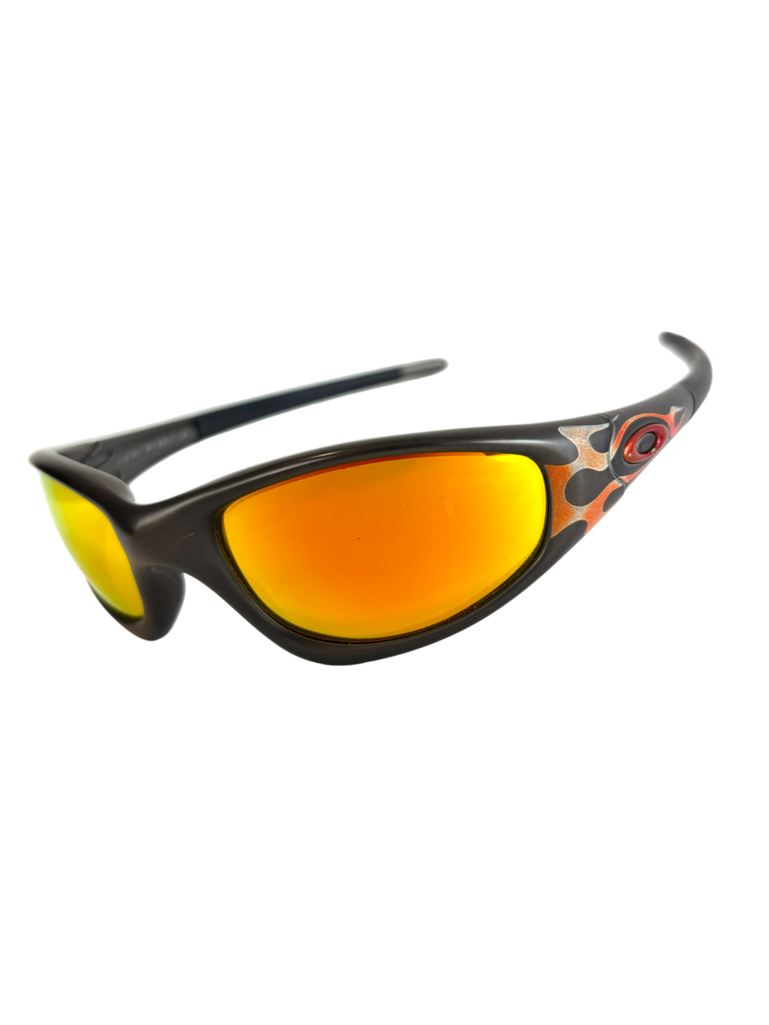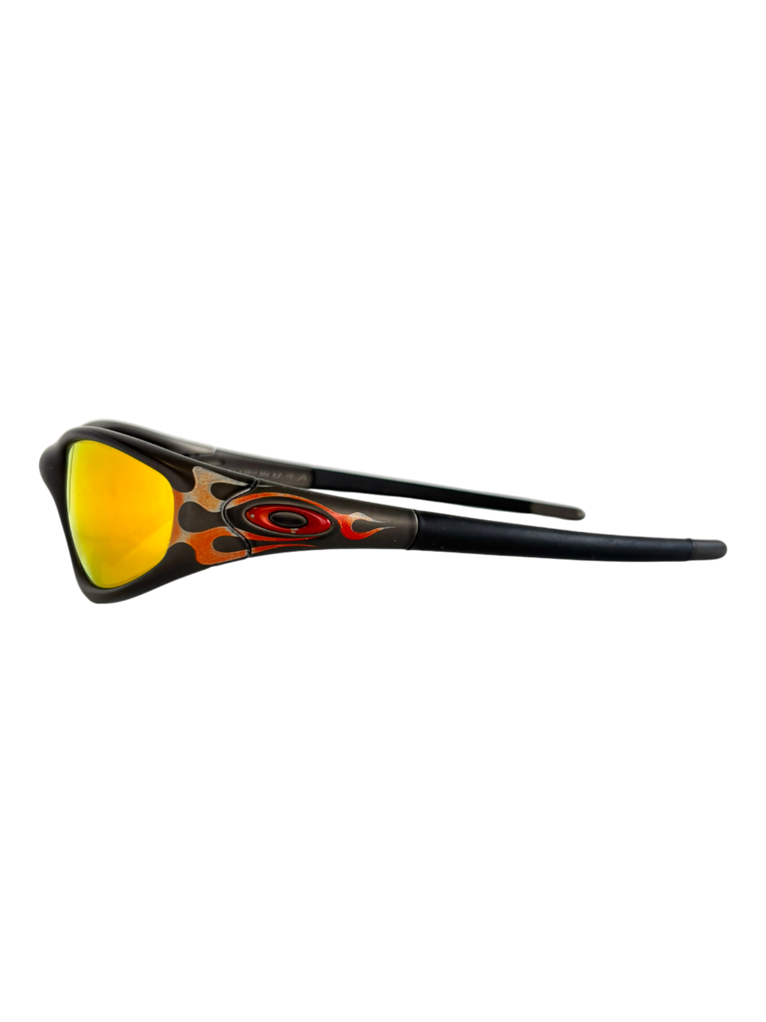 1999 OAKLEY NEW STRAIGHT JACKET JET BLACK - ORANGE FLAMES / FIRE IRIDIUM